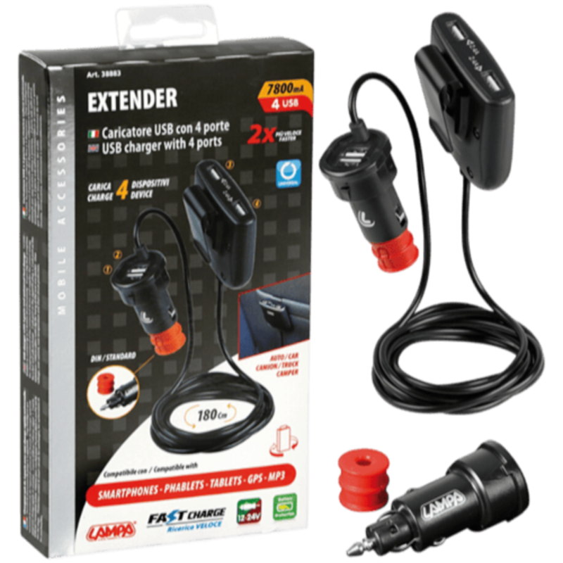 CHARGEUR BATTERIE 4 USB + RALLONGE 12/24V 7800MA