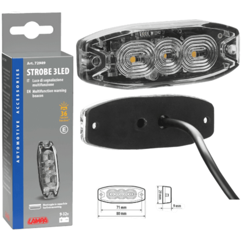 FEU MULTI-FONCTIONS 3 LED 9/32V 80x29MM ORANGE