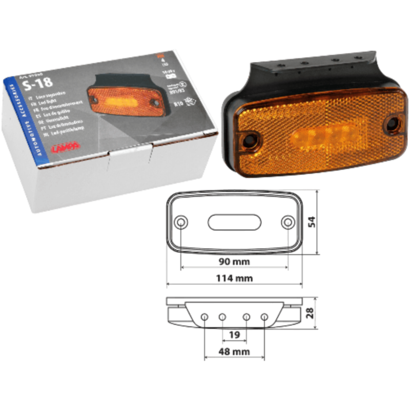 FEU DE GABARIT AVEC REFLECTEUR ET SUPPORT 4 LED 12/24V ORANGE