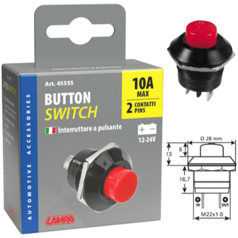 BOUTON POUSSOIR 12/24 V, 10 A MMAX
