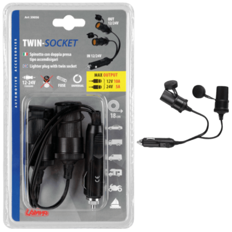 FICHE AVEC CABLE ET DOUBLE PRISE 12/24V