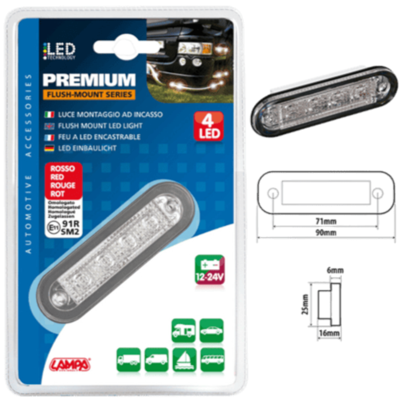 FEU 12/24V PREMIUM SURFACE 4 LEDS ROUGE