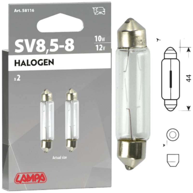 2 AMPOULES NAVETTE 12V 10W 11X44MM