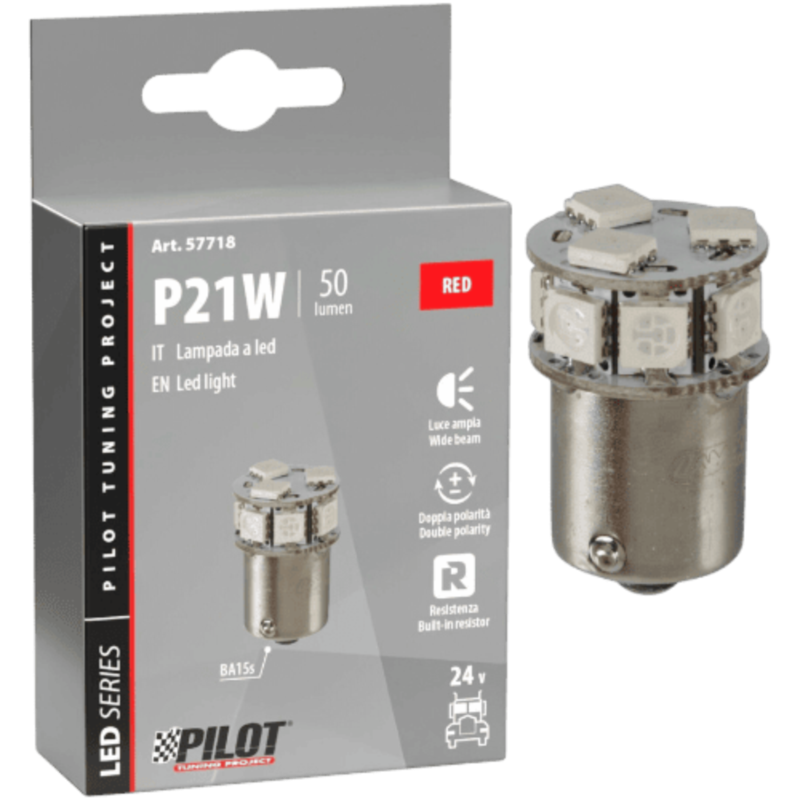 AMPOULEx1-24/32V Led Series-10 SMD x 1 chip-(P21W)-BA15s ROUGE