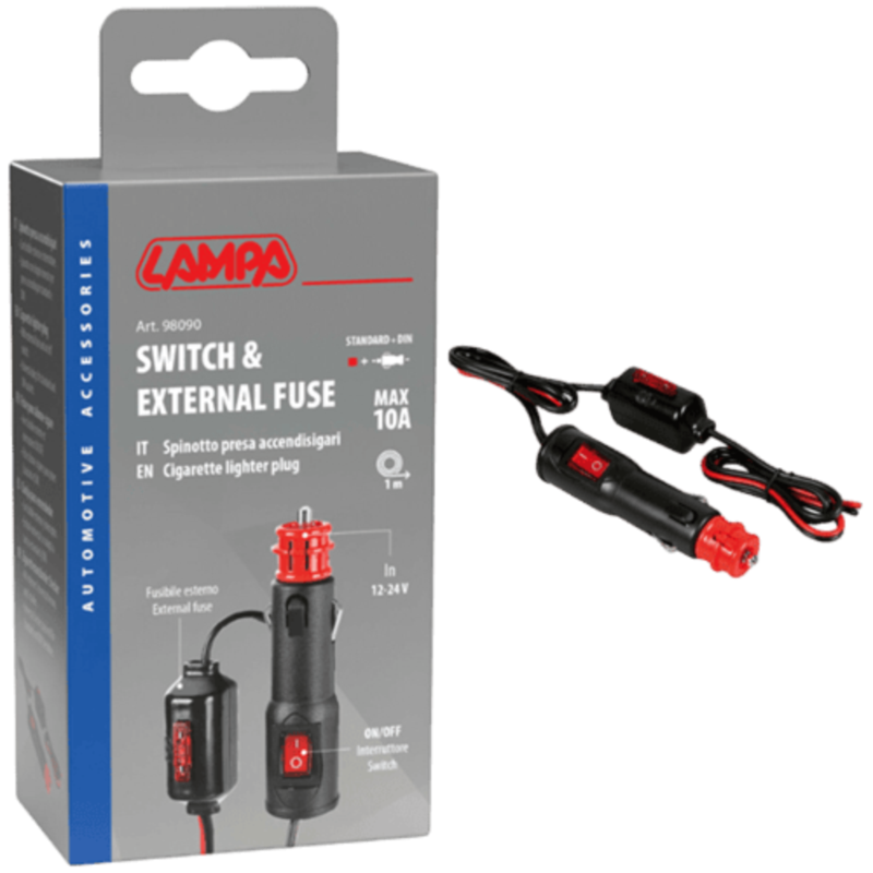 FICHE AC AVEC INTERRUPTEUR 12/24V 1M - MAX 10A