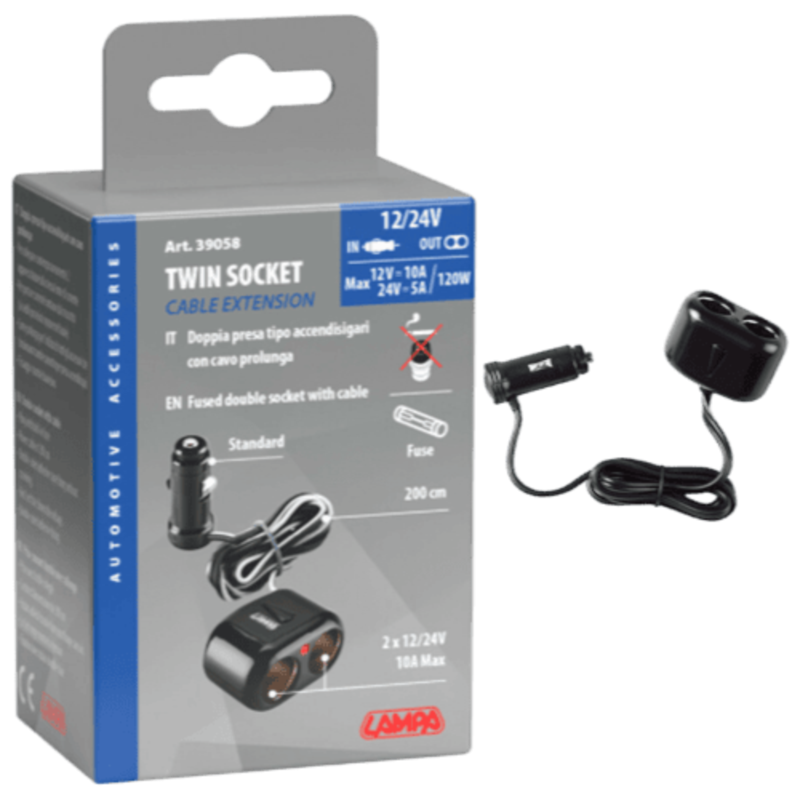 DOUBLE PRISE ALLUME CIGARE 12/24V AVEC RALLONGE