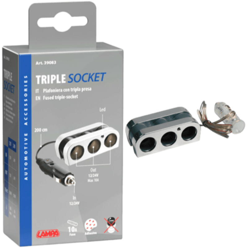 TRIPLE PRISE ALLUME CIGARE 12/24V 10A MAX